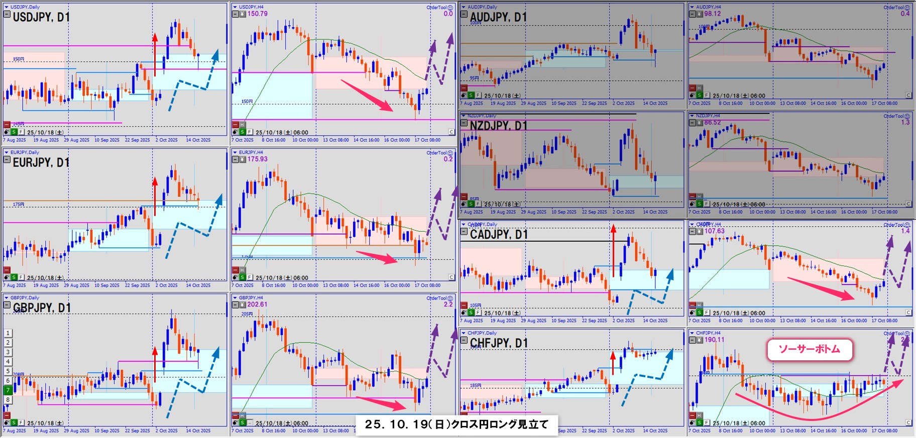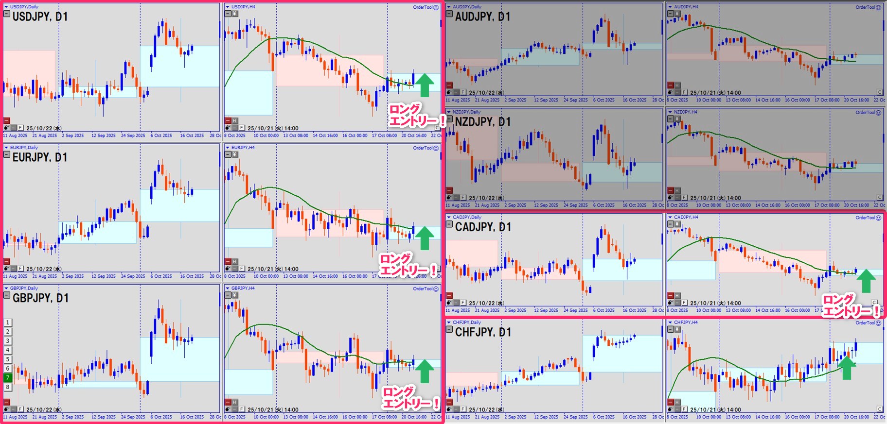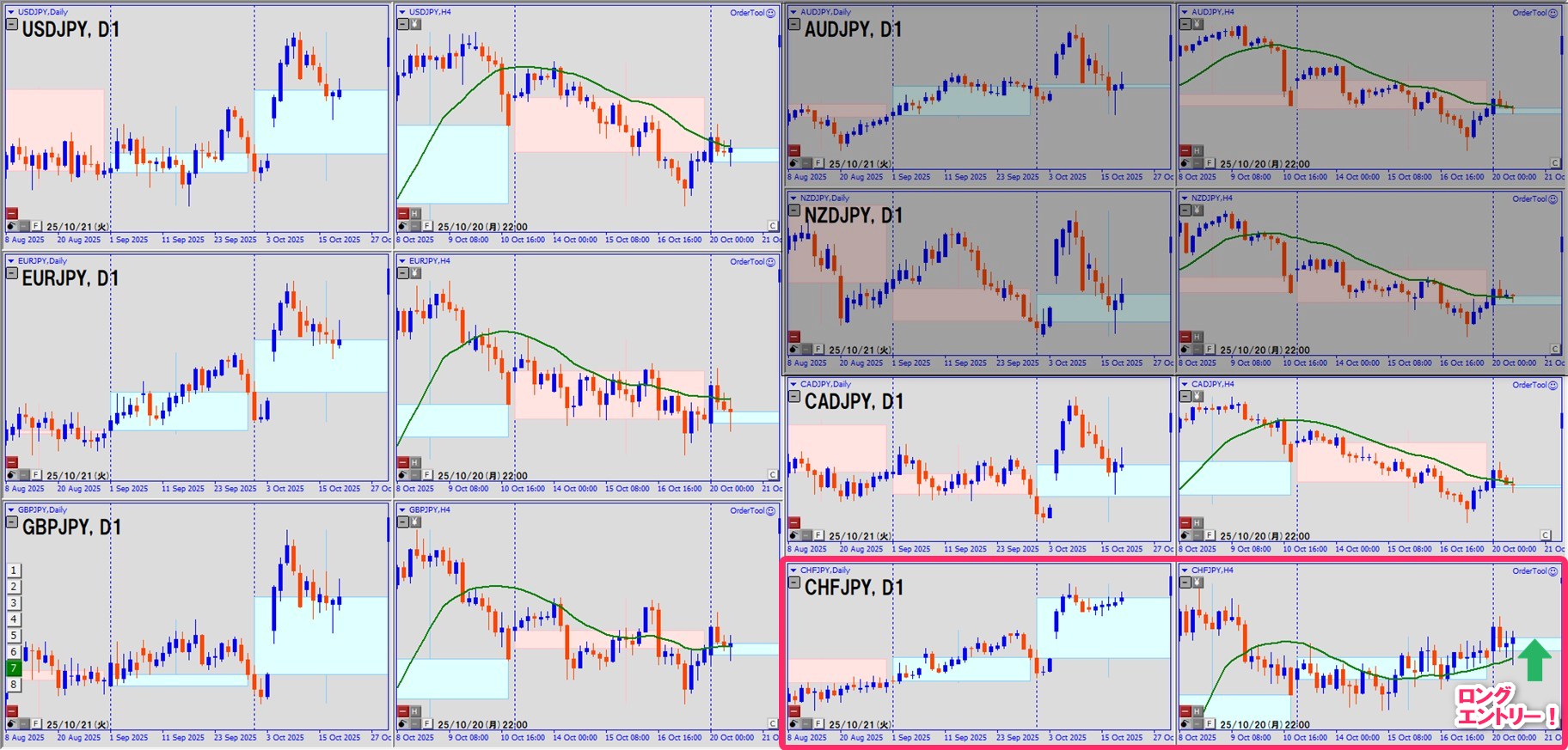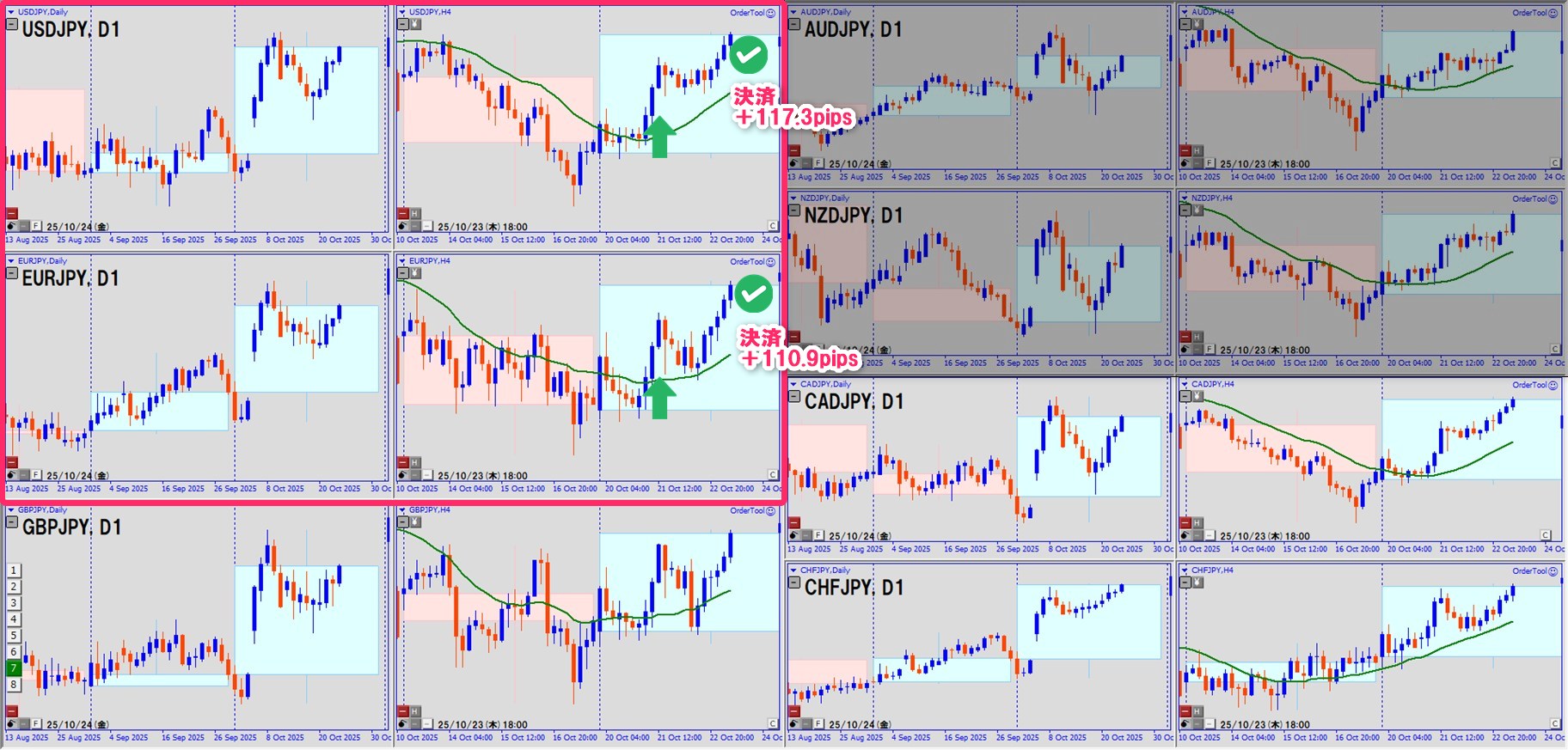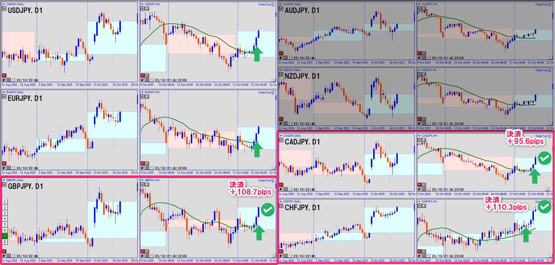 2025.10.20(月)14:00 ~ 21(火)14:00 CHFJPY+110.3pips USDJPY+117.3 EURJPY+110.9 GBPJPY+108.7 CADJPY+95.6
