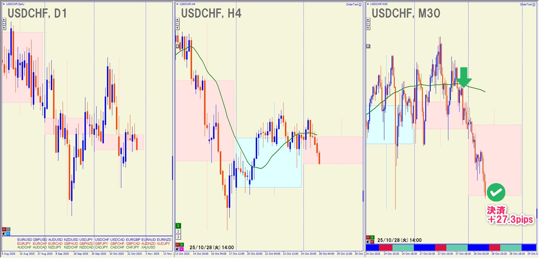 2025.10.27(月)24:00 USDCHF +27.3pips