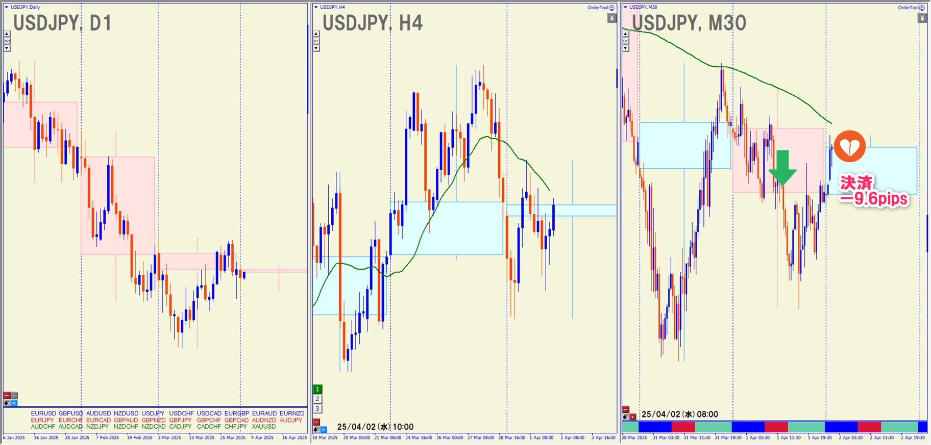 2025.4.1(火)10:00 USDJPY -9.6pips