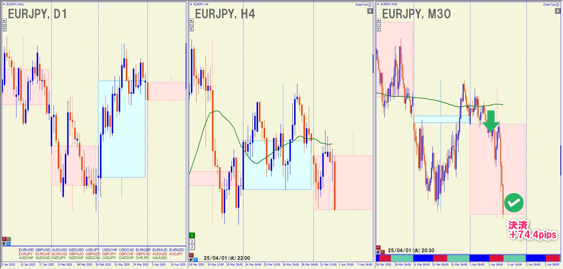 2025.4.1(火)14:00 EURJPY +74.4pips