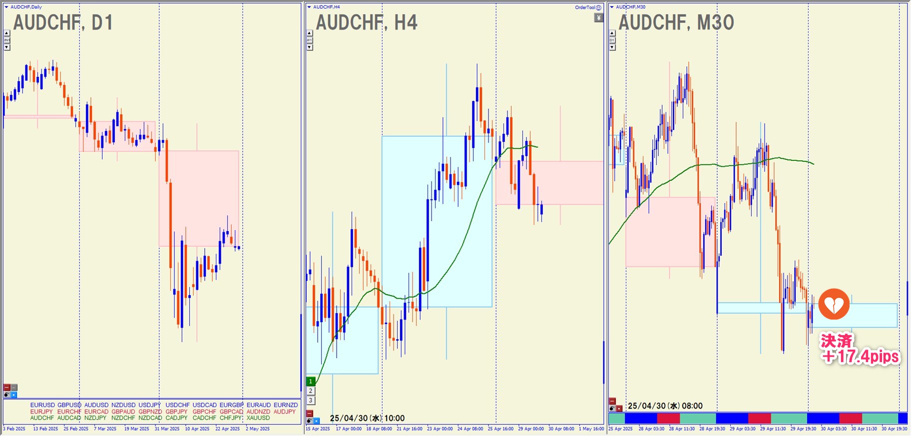 2025.4.29(火)22:00 AUDCHF +17.4pips