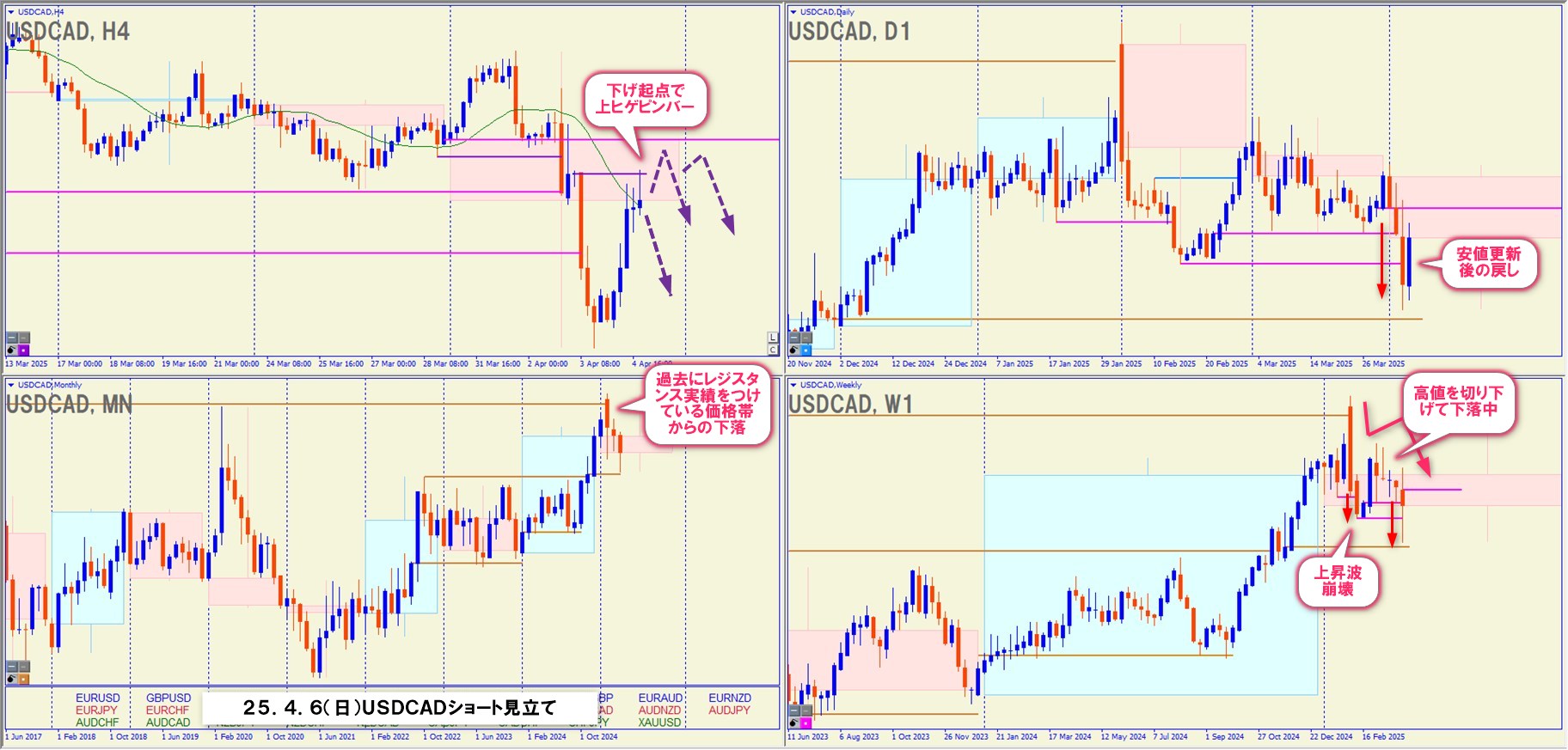 2025.4.8(火)21:00 USDCAD -24.9pips