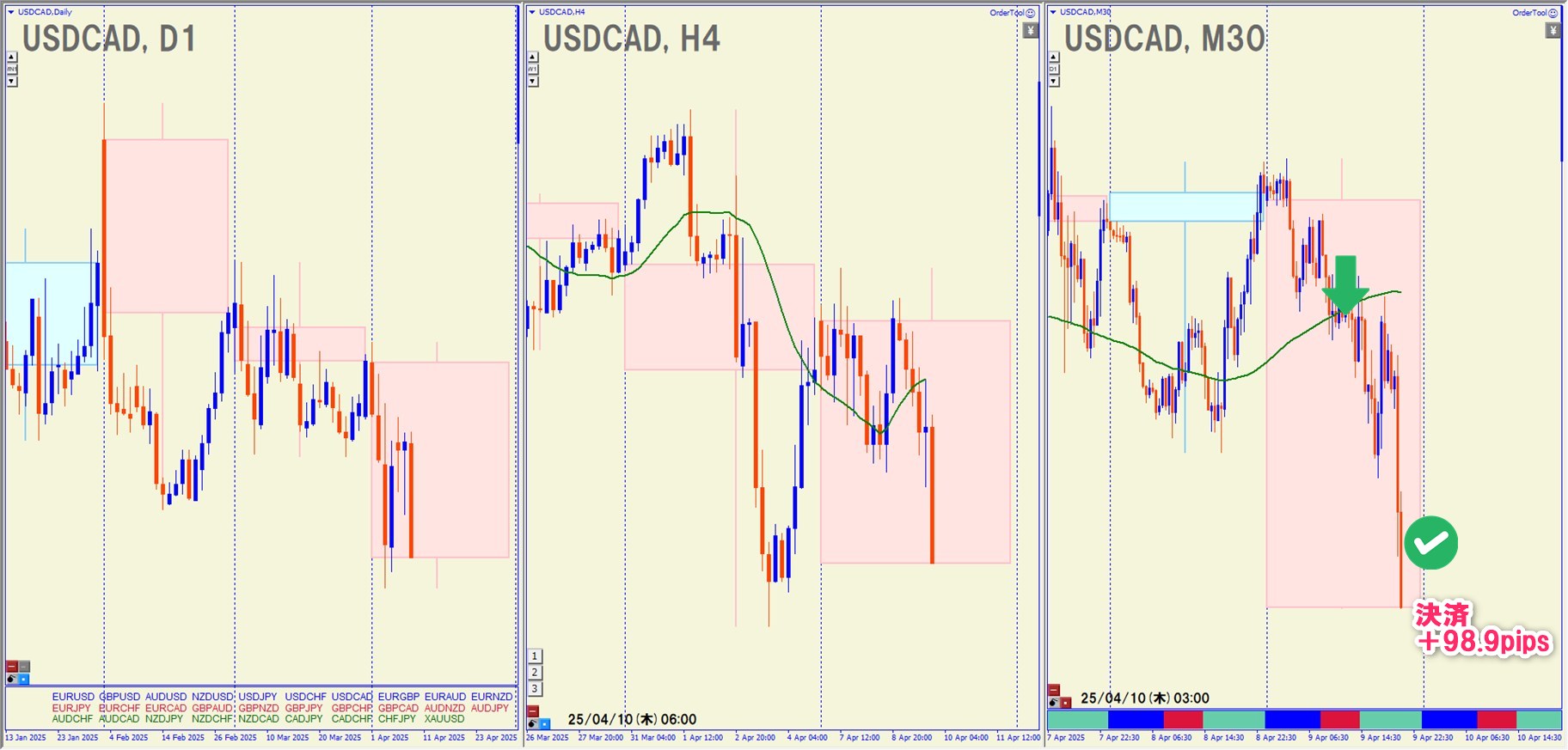2025.4.9(水)18:00 USDCAD +98.9pips