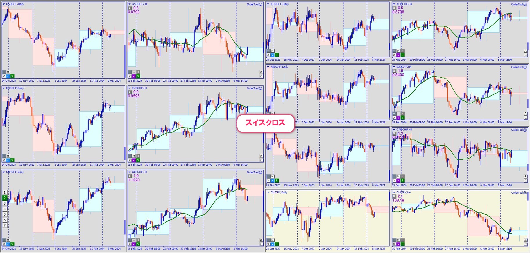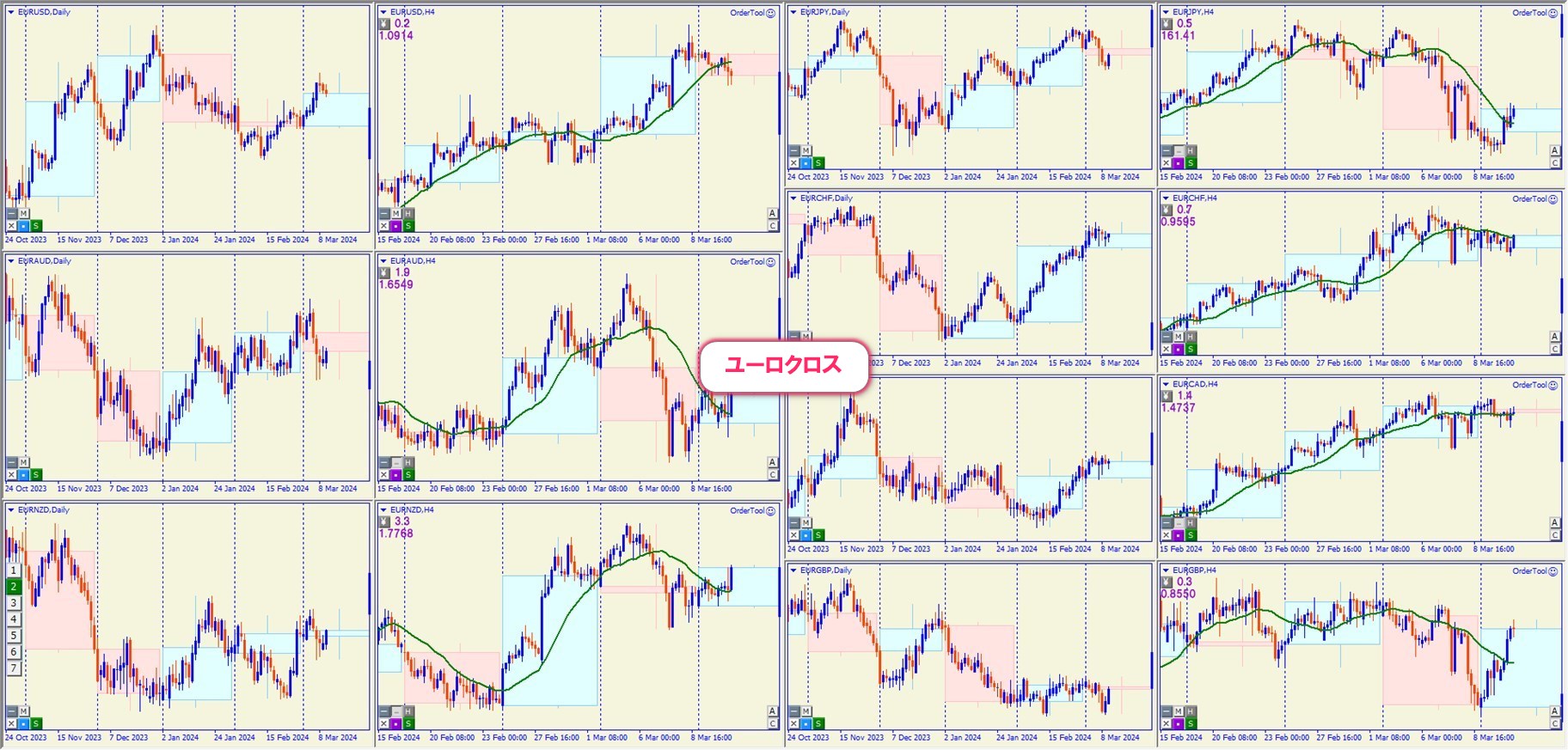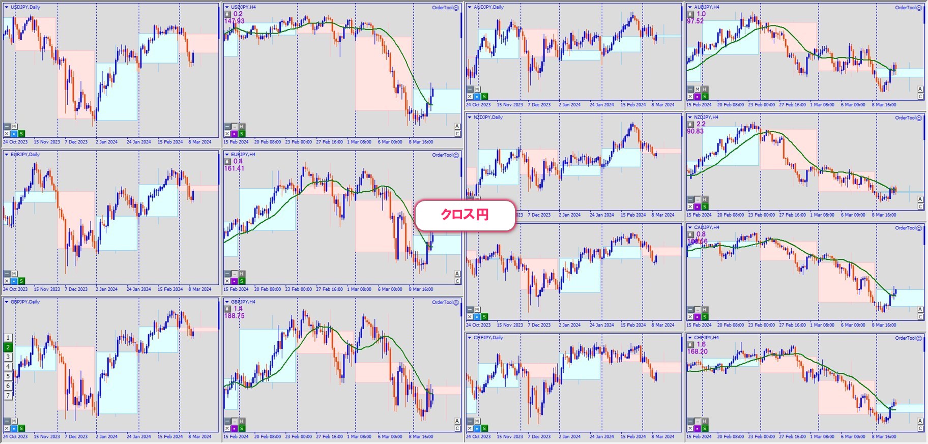 それぞれのクロス通貨ペアたちを映して監視していますよ