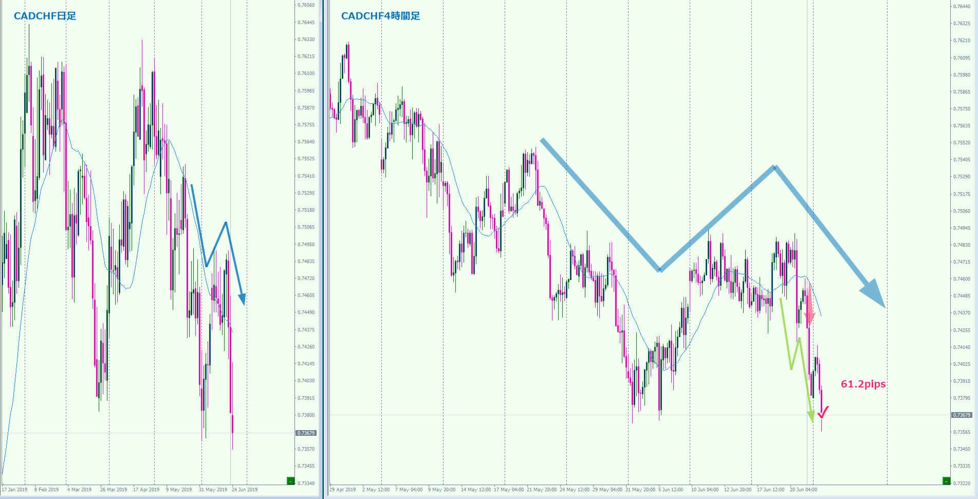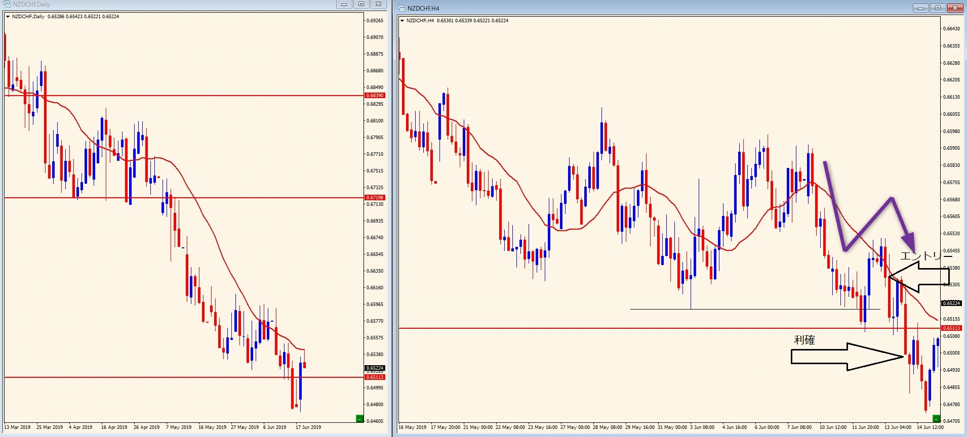 Mさん 2019.6.13 NZDCHF +34.7pips
