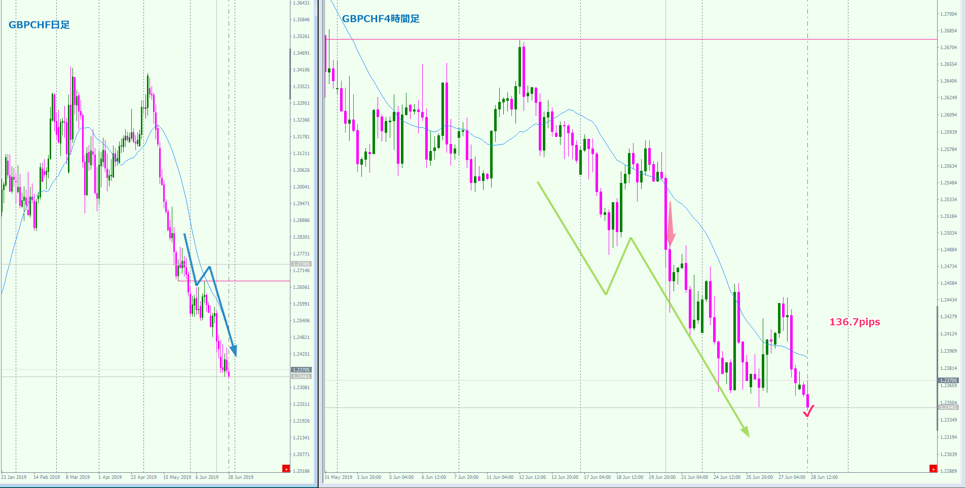 Nさん 2019.6.20 GBPCHF +136.7pips