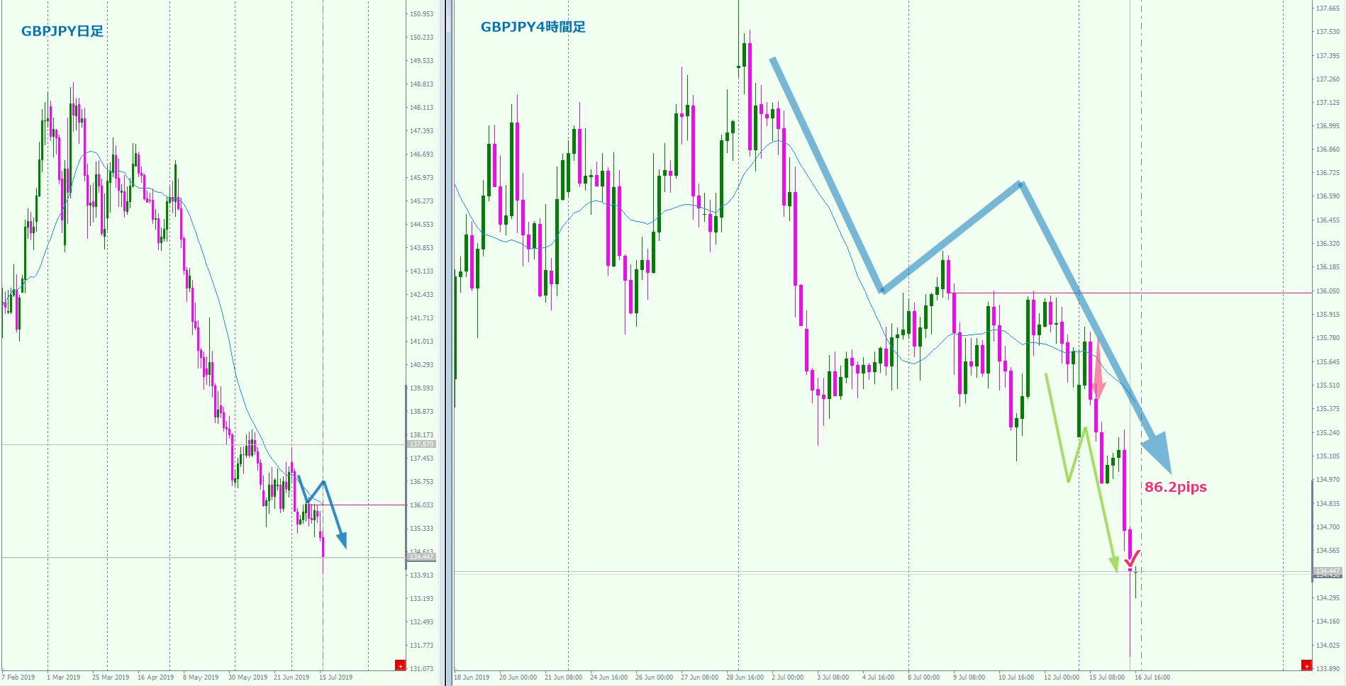 Nさん 2019.7.15 GBPJPY +86.2pips