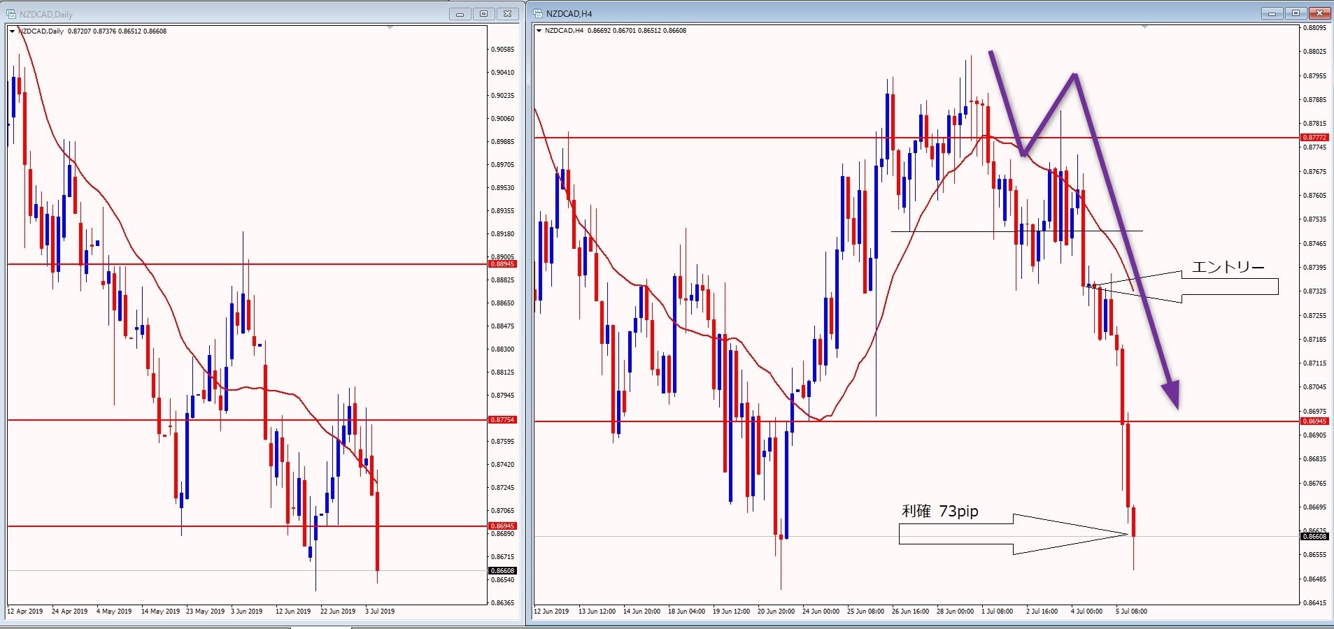Mさん 2019.7.4 NZDCAD +72.9pips