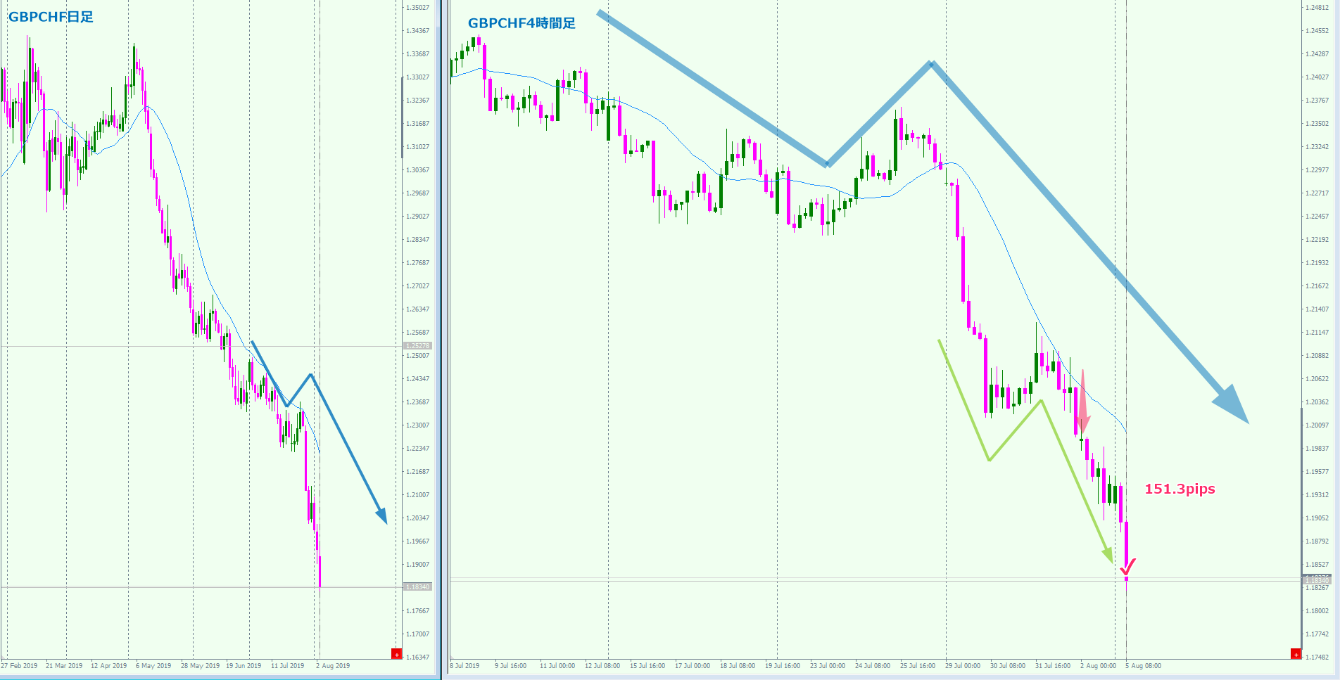 Nさん 2019.8.2 GBPCHF +151.3pips
