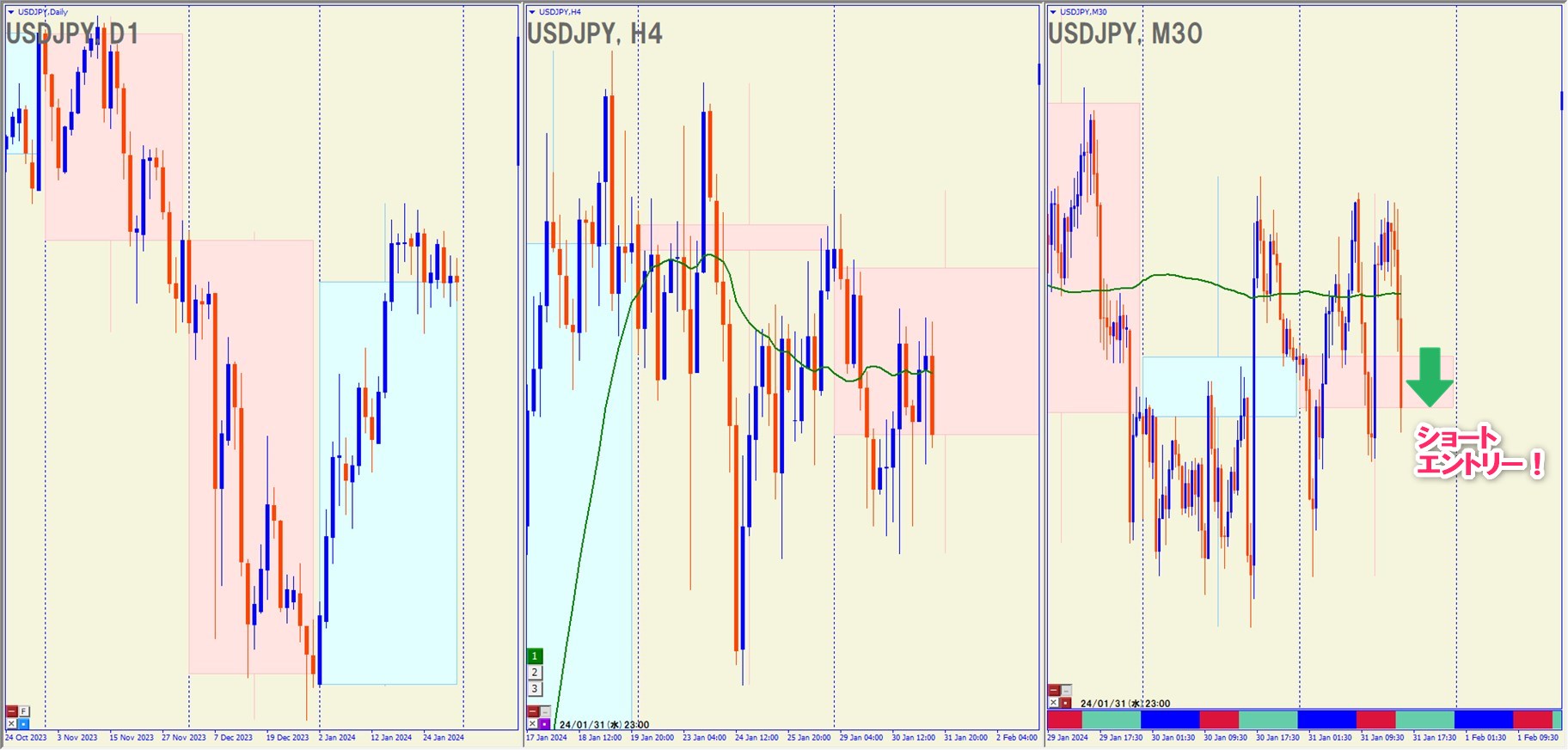 2024.1.31(水)23:00 USDJPY ショート +83.3pips