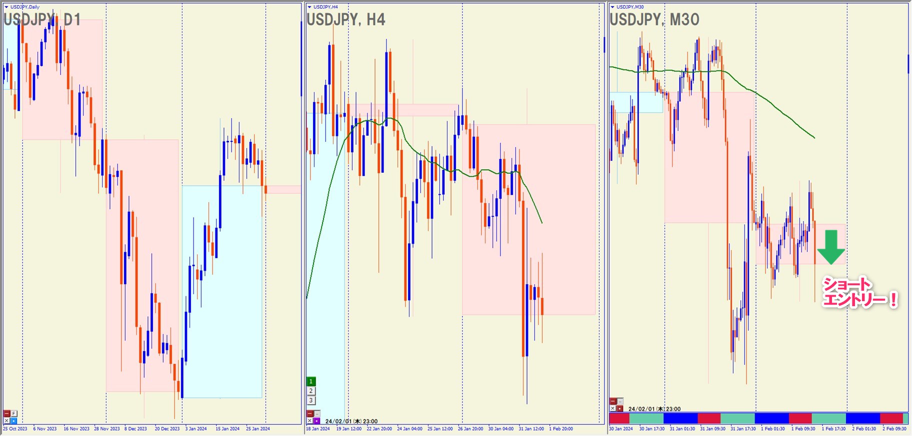 という、マルチタイムフレーム分析の術の必要性を感じて頂ければ幸いです。