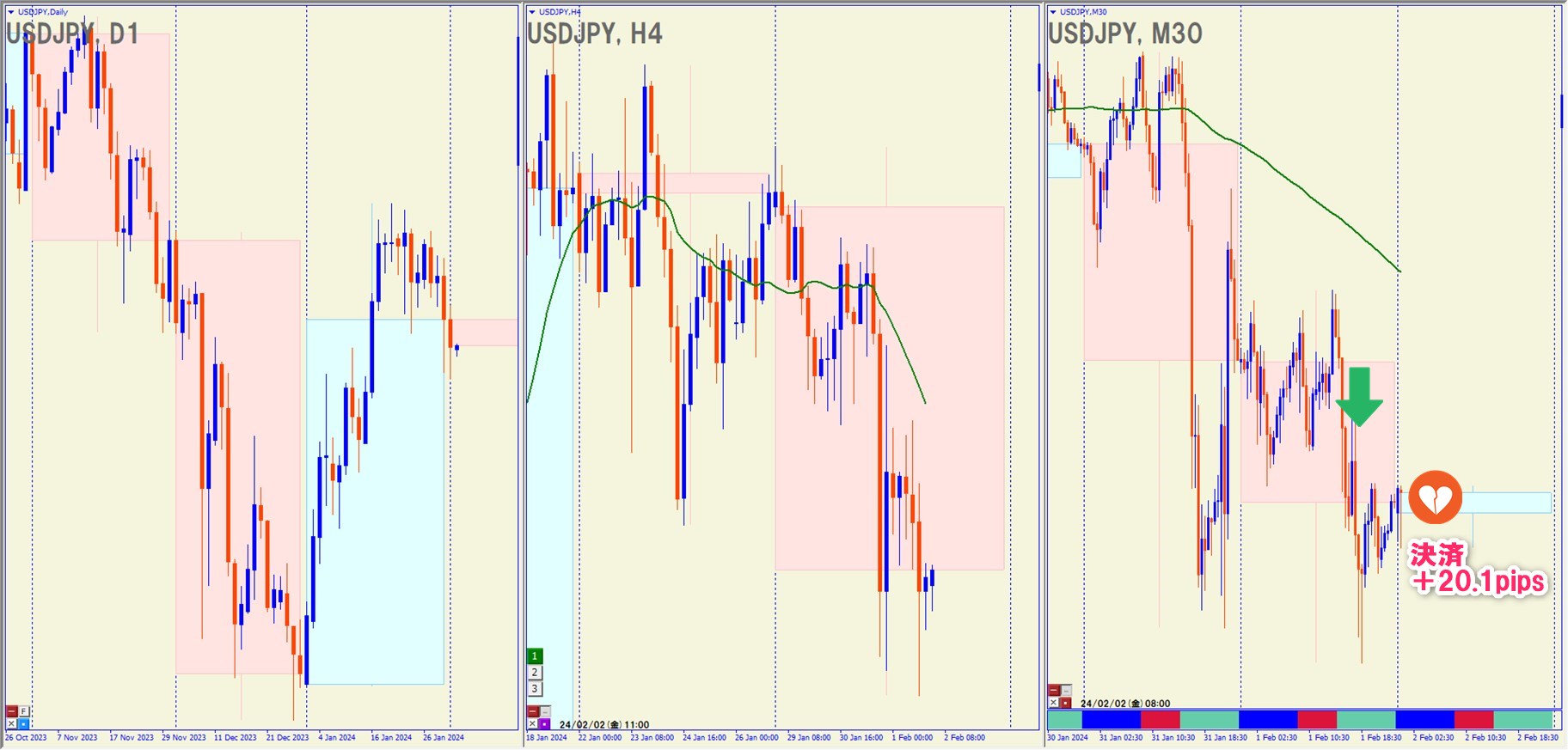 2024.2.1(木)23:00 USDJPY ショート +20.1pips