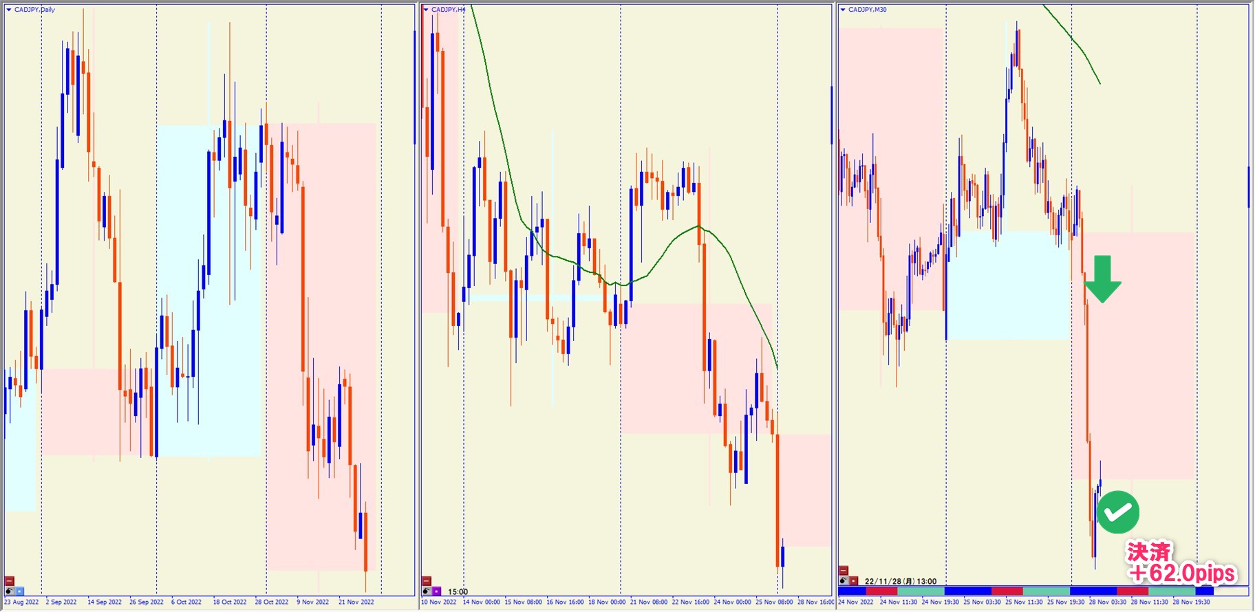 2022.11.28 10:00 CADJPY ショート +62.0pips