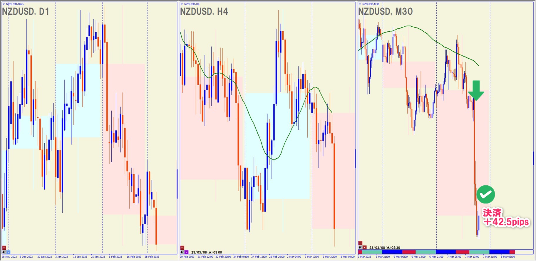 2023.3.7(火)23:00 NZDUSD ショート +42.5pips