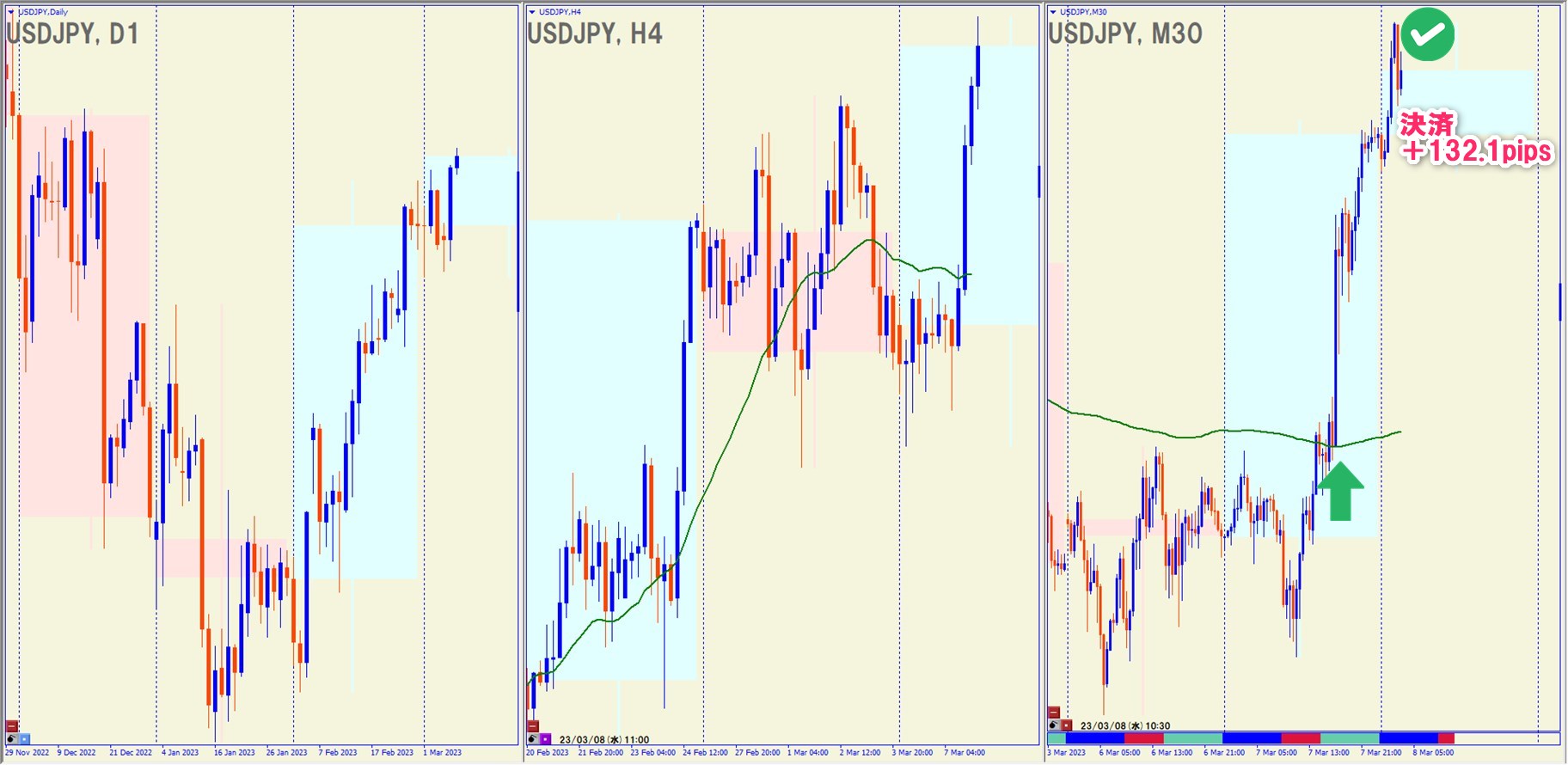 2023.3.7(火)23:00 USDJPY ロング +132.1pips