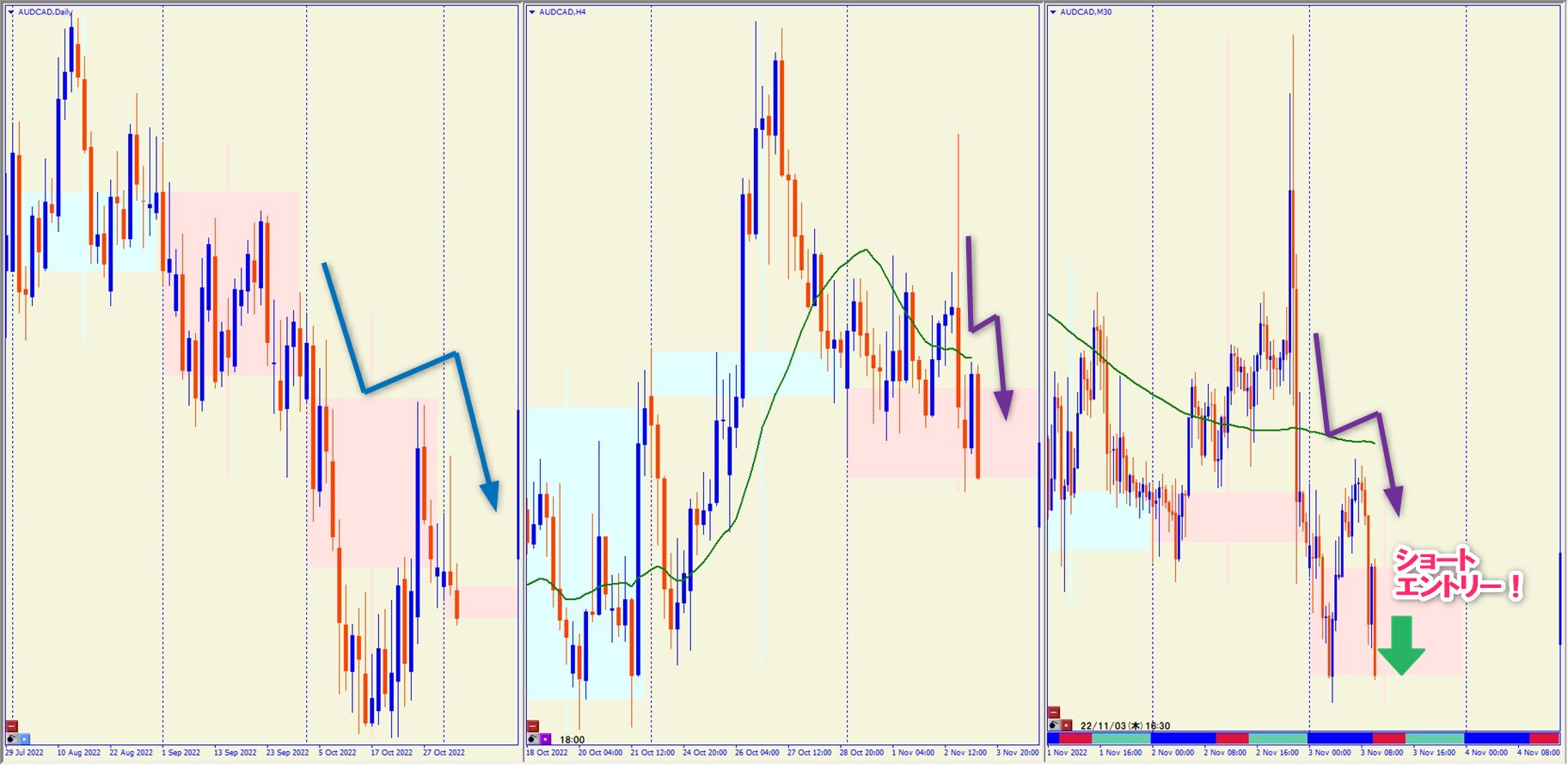 2022.11.3 16:30 AUDCAD ショート +45.7pips