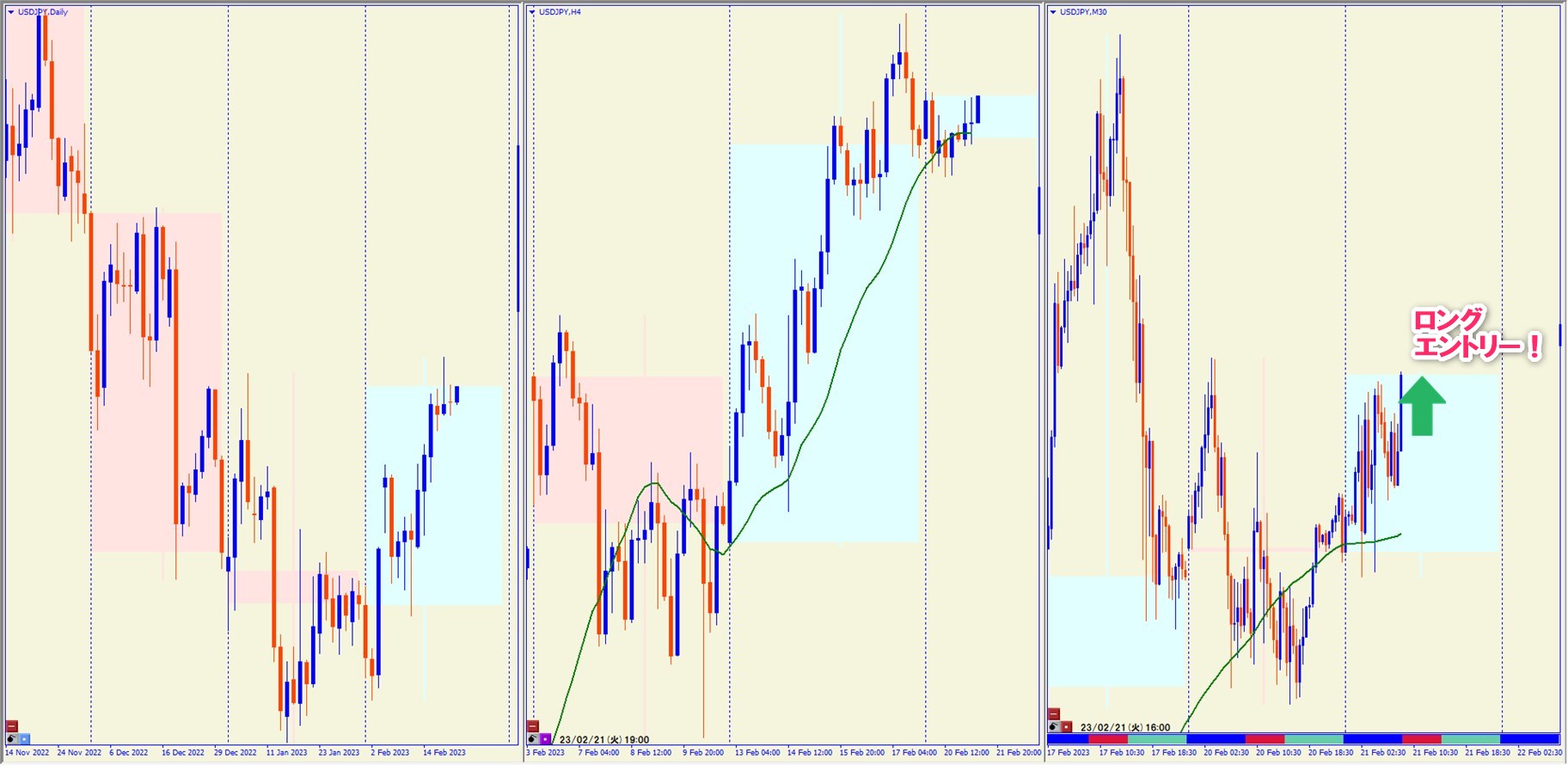 ▼2023.2.21(火)16:00 USDJPY ロング +43.2pips▼