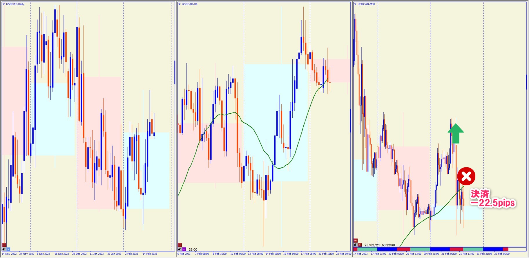 ▼2023.2.21(火)16:30 USDCAD ロング -22.5pips▼
