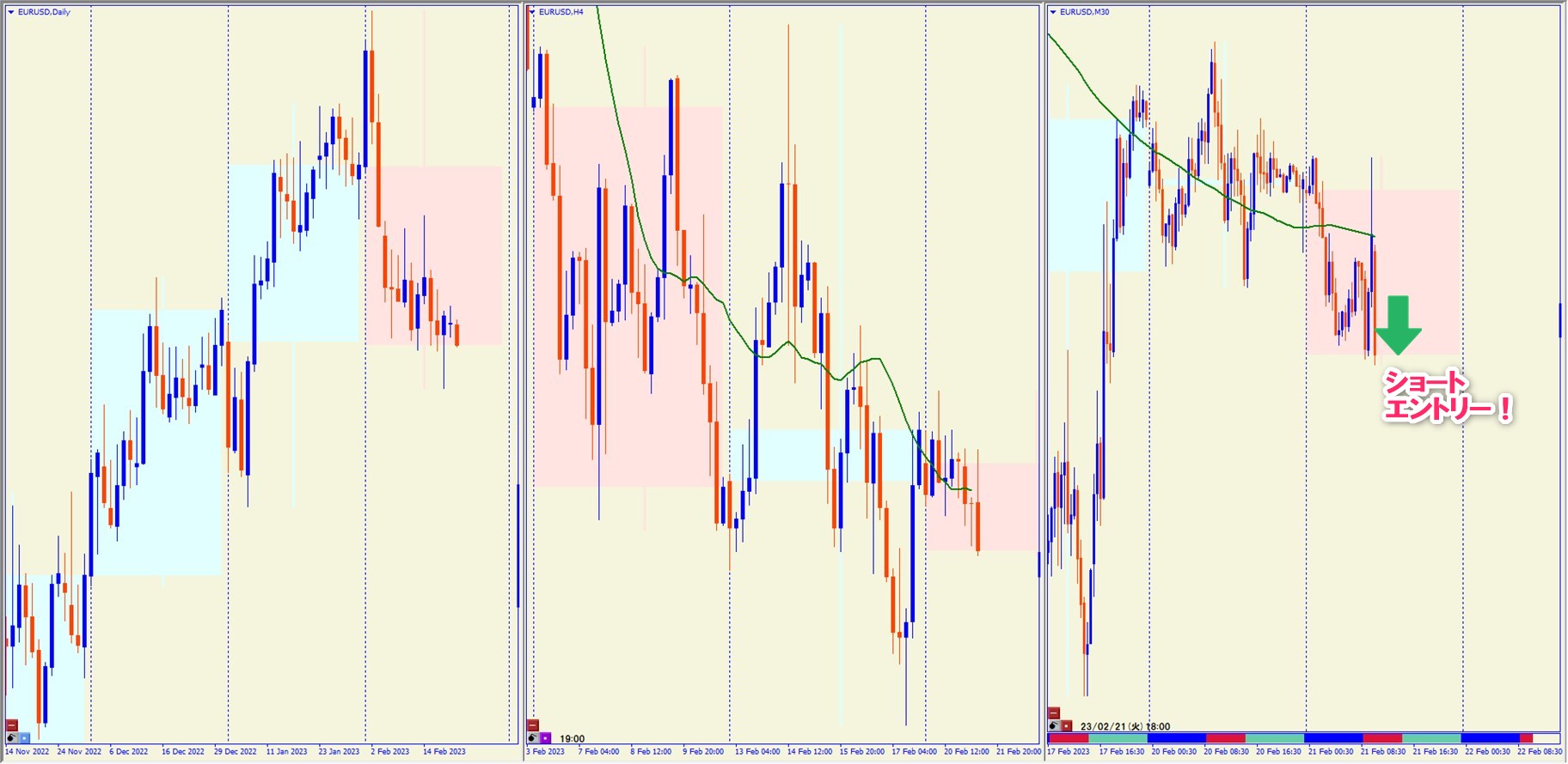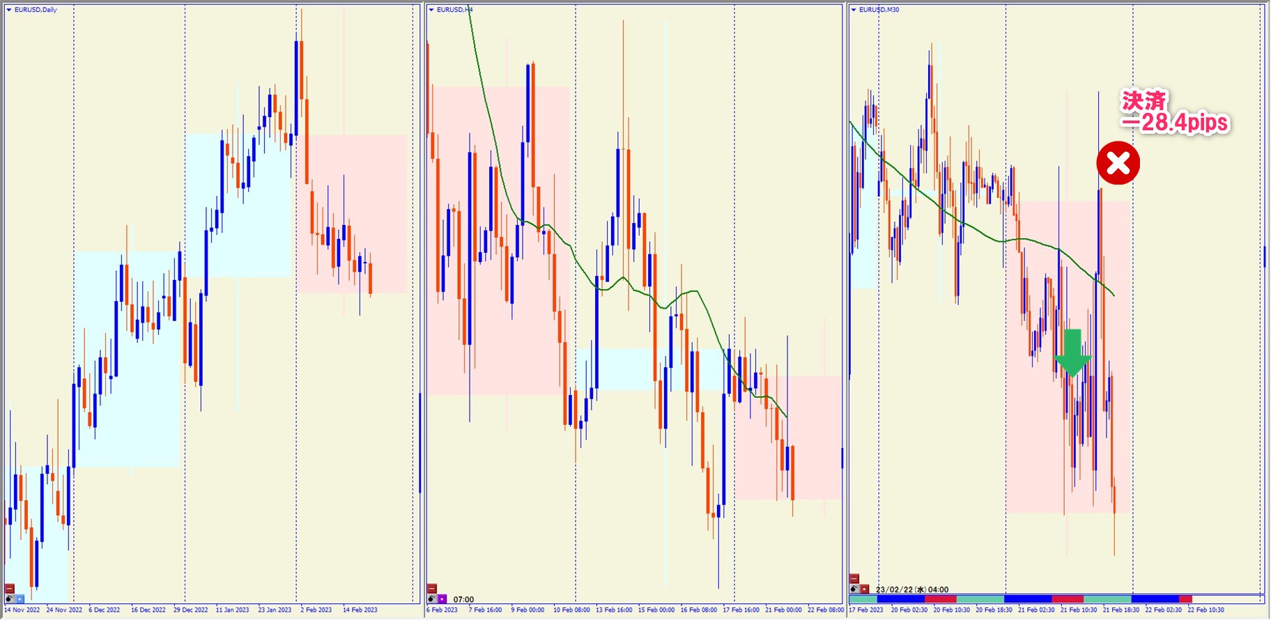 ▼2023.2.21(火)18:00 EURUSD ショート -28.4pips▼
