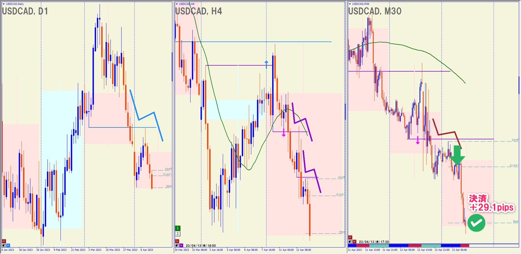 ▼2023.4.12 カナダ政策金利発表へ向けての戦略 USDCADショート▼(約8分)