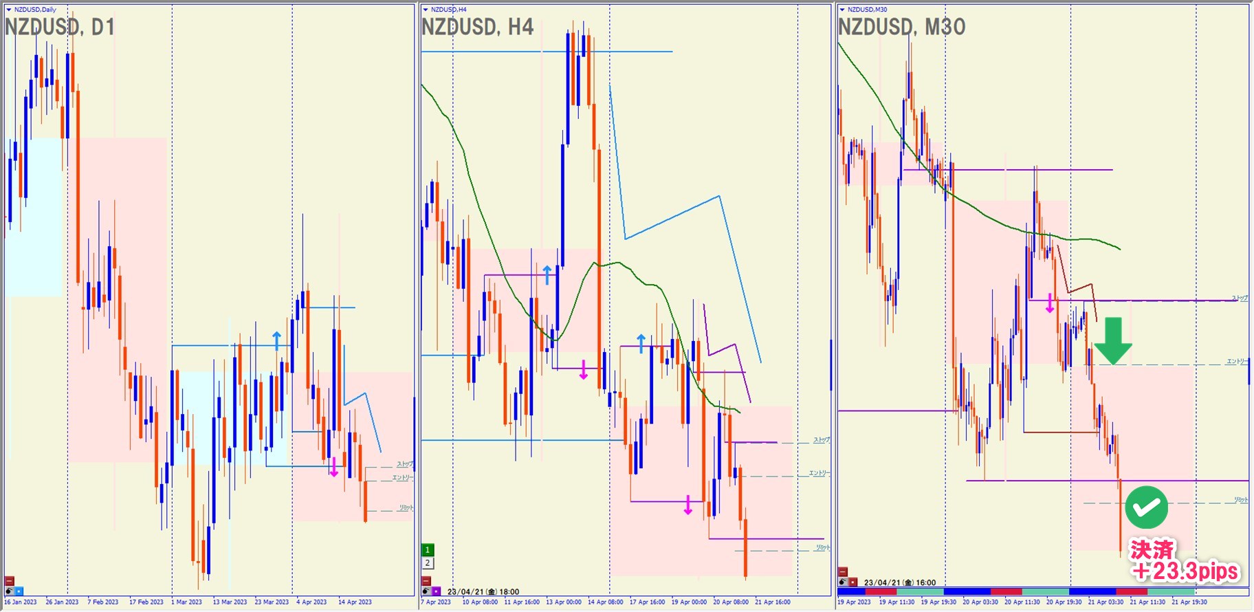 2023.4.21(金)NZDUSD ショート +23.3pips