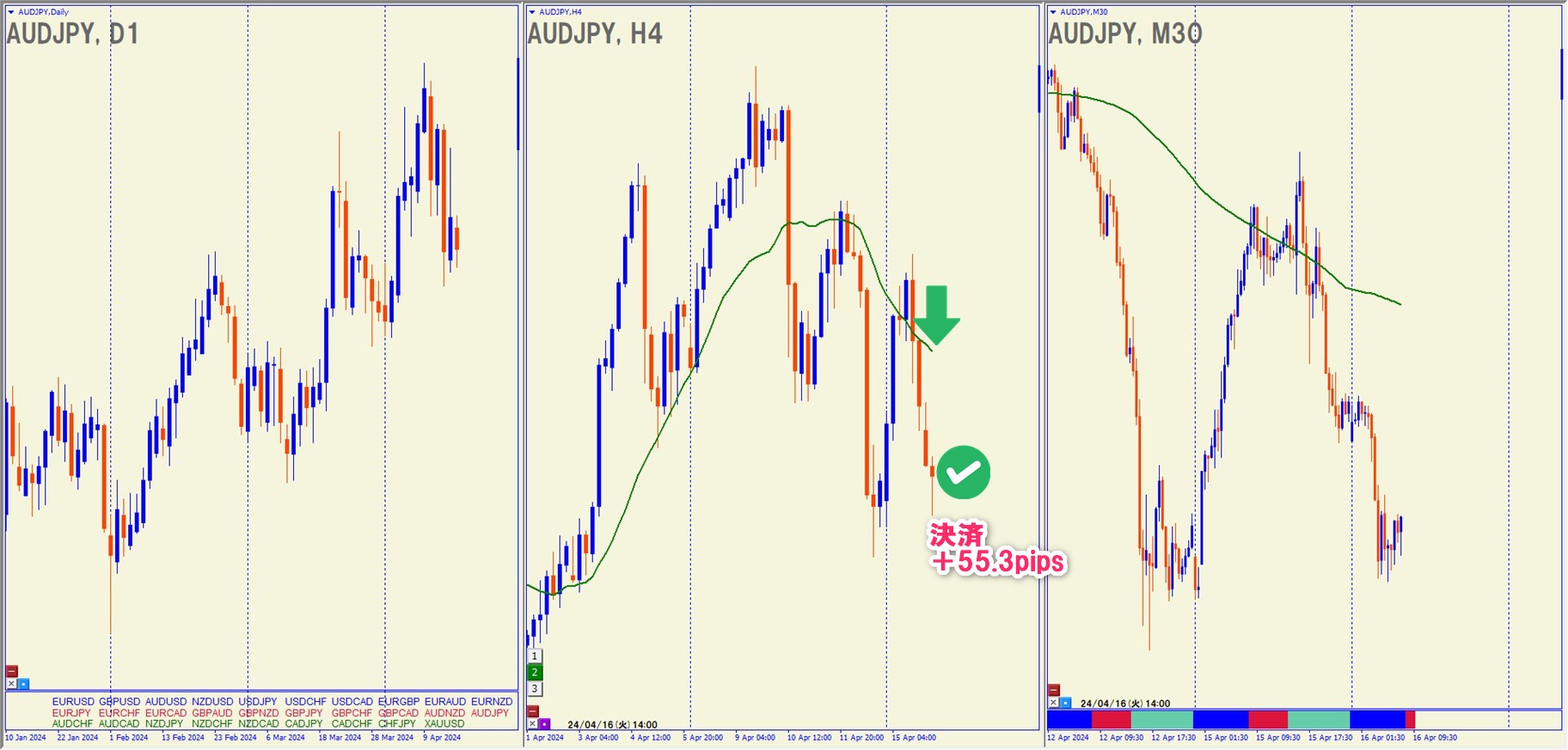 2024.4.15(月)26:00 AUDJPY ショート +55.3pips