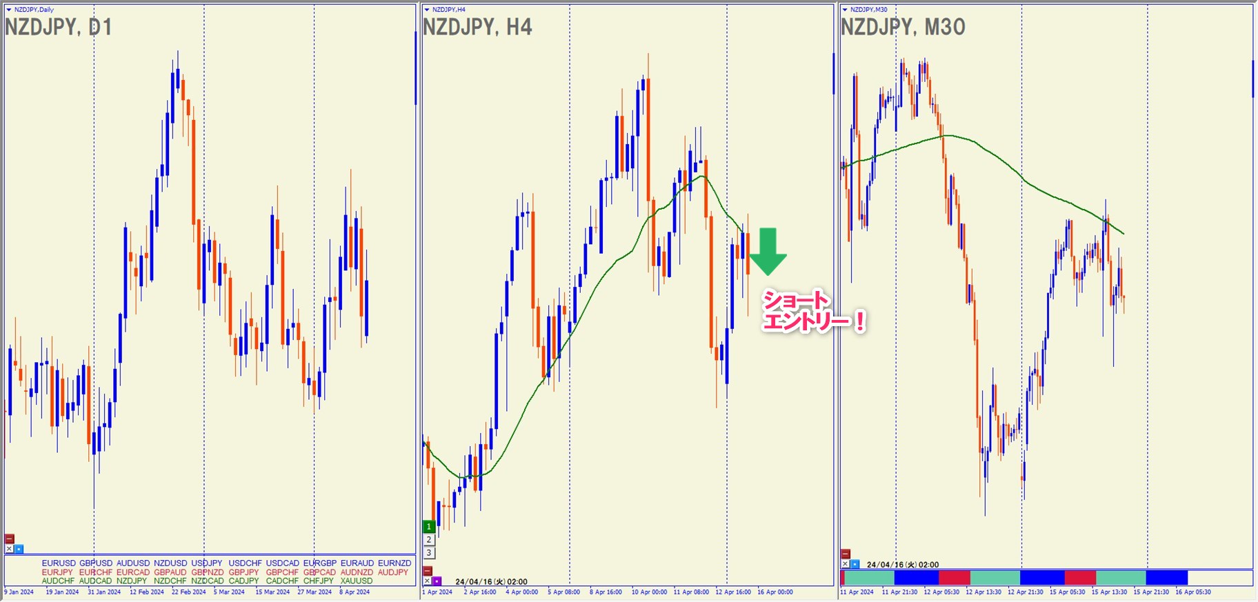 2024.4.15(月)26:00 NZDJPY ショート +40.1pips