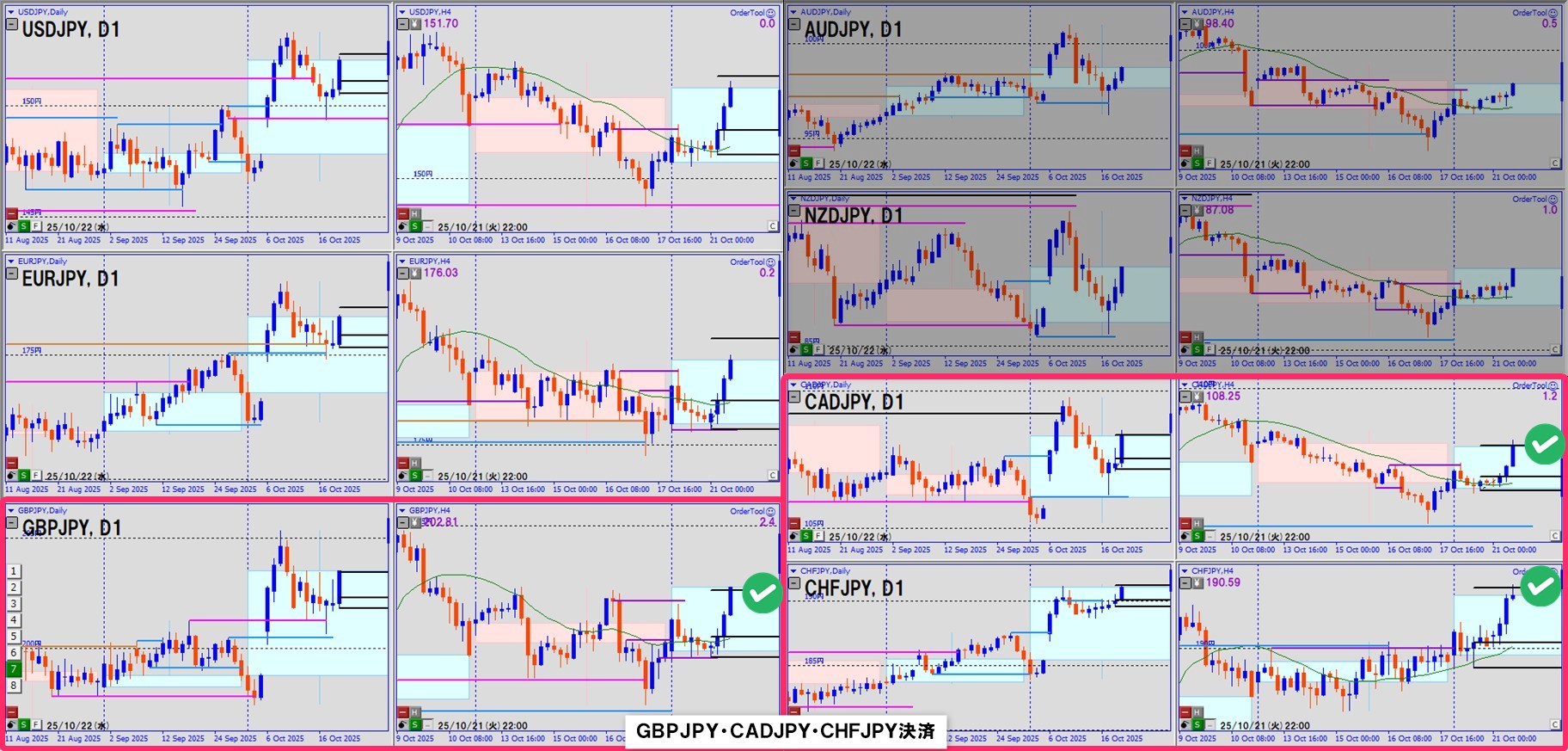 狙い通り、全てのクロス円で押し目買いが成功しました。