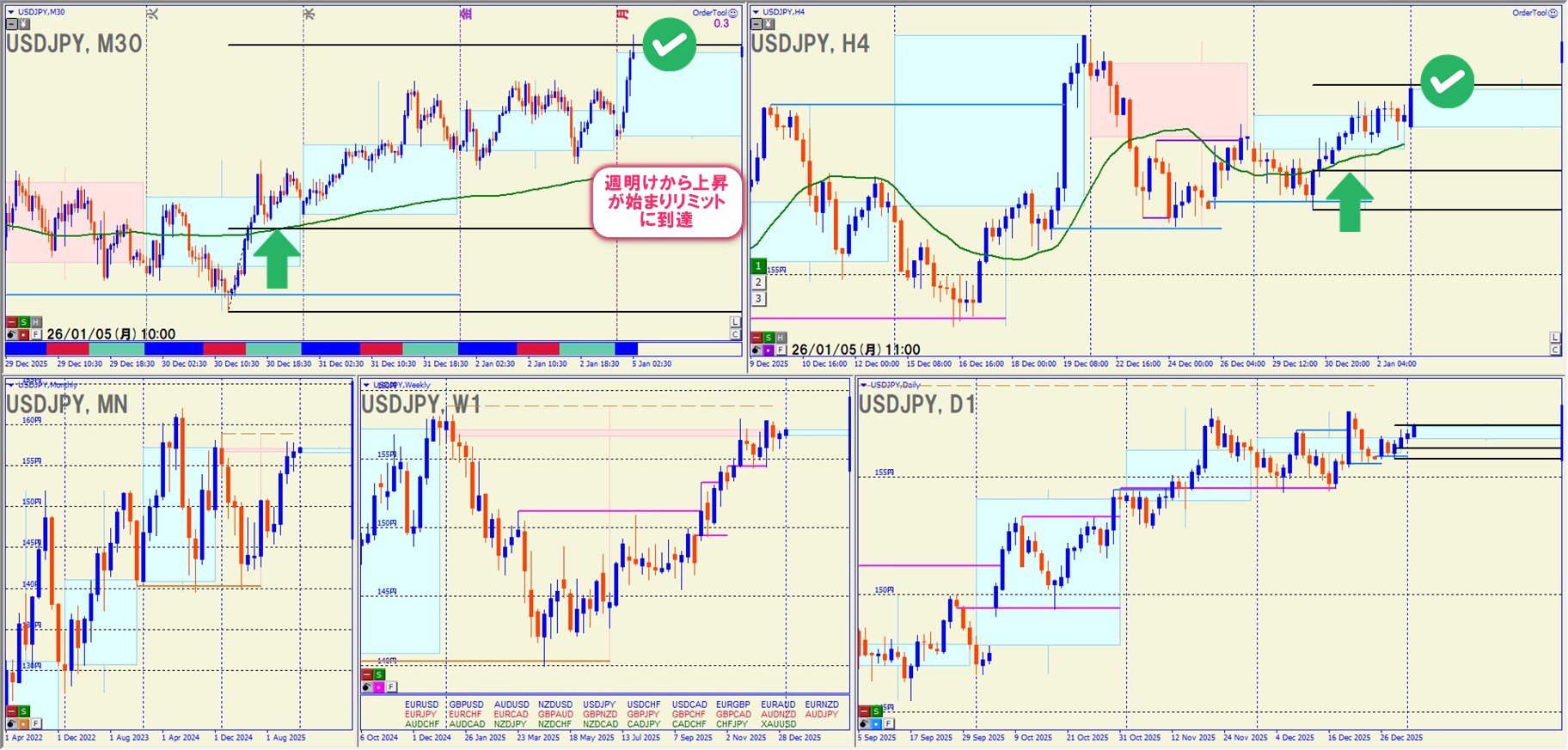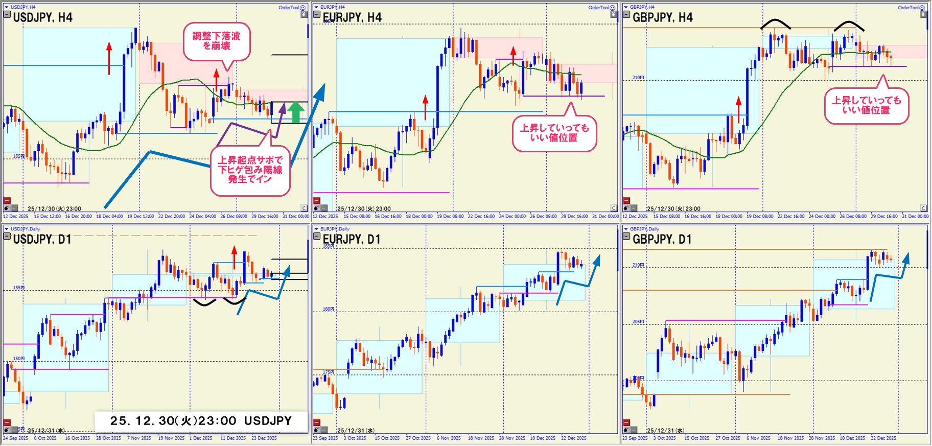 ポイント: クロス円全体が「上げてもいい位置」にいたことで、円売りの優位性が高いと判断できた点。
