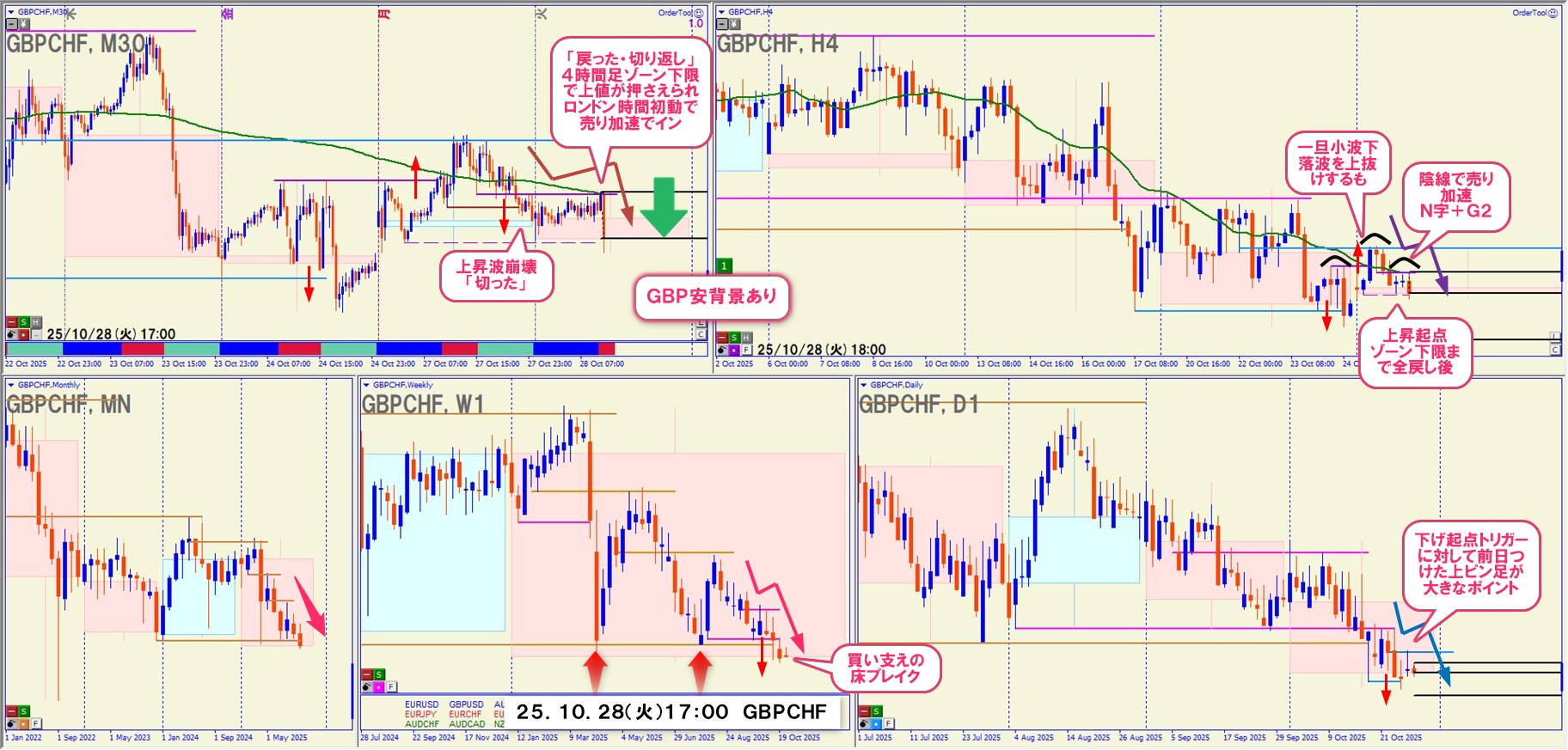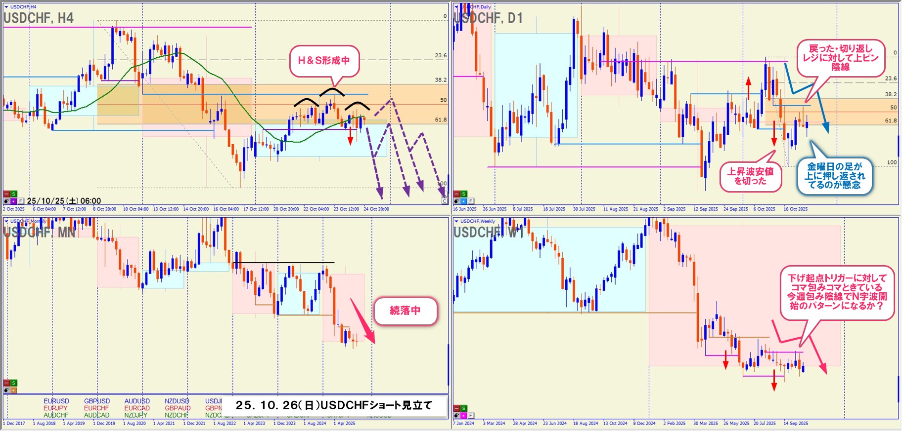✅ 根拠:4時間足H&S右肩見込み&ロンドン初動での売り加速