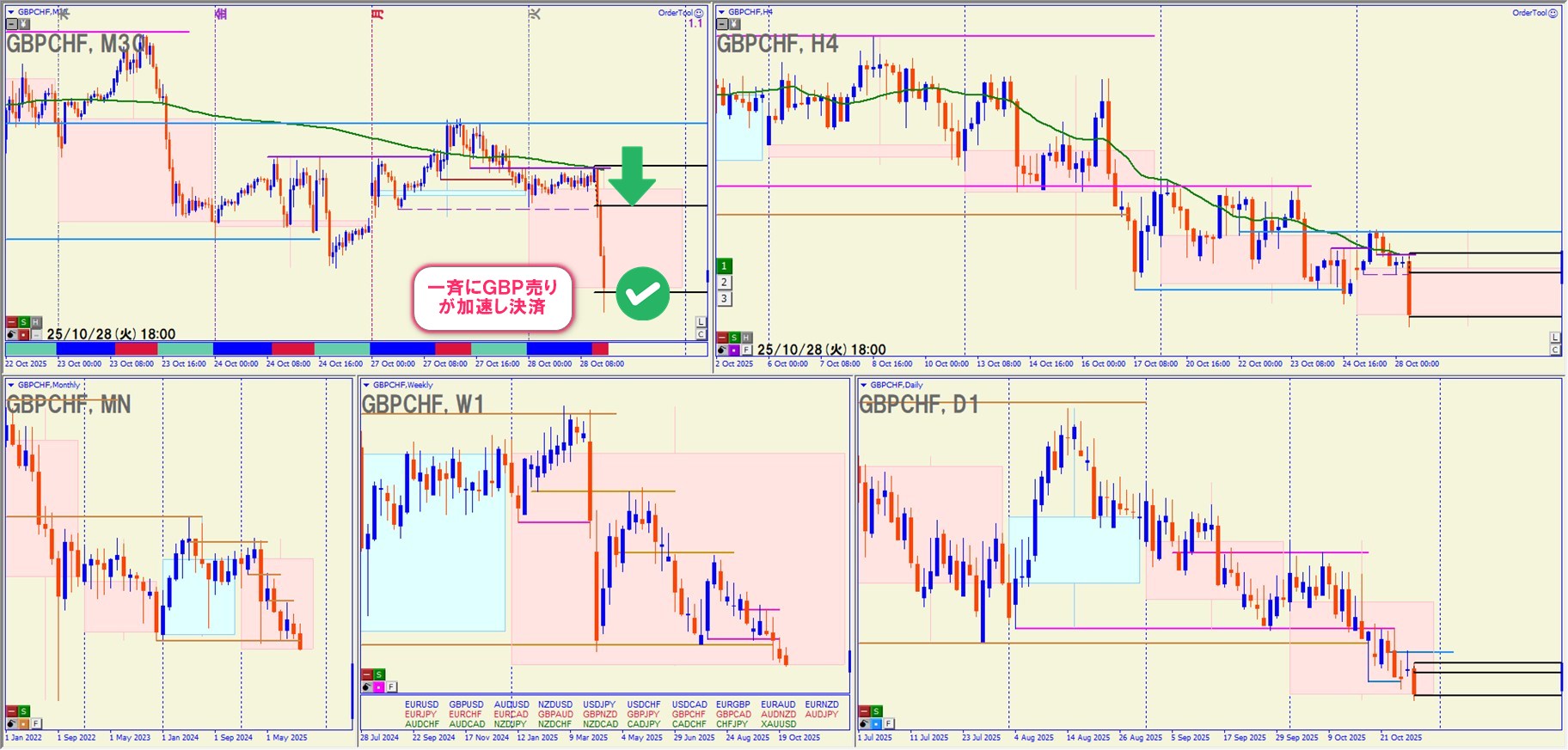 エントリー直後、一斉にポンド売りが入り短時間で決済。